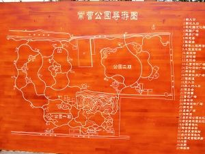 按着公园指示图,向西北方向走约400米穿过一个球形广场,一个公厕出现眼前,但是在厕所门上挂着一个“正在打扫”的牌子,男女厕所都是“铁将军”把门,透过窗户记者并没有发现其中有工作人员在清扫。再向西约500米,公园西南侧的另一个公厕同样大门紧闭。13时30分,记者离开公园时,两个大门紧锁的厕所仍未开门。