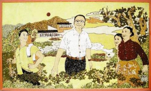 一幅用24种五谷杂粮作颜料,青川县枣树村15个村民用双手一颗一颗粘贴的特色工艺画《总理来到枣树村》,15日已基本完成。画作宽3.05米,高1.83米,用粮25公斤,真切表达了枣树村村民的浓浓情意。
