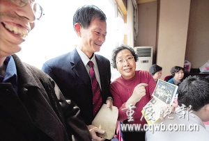 64级1班学生、在渝中区统战部工作的王有惠为老师献上一副题字,5班一位男学生奉上一幅书画。“这不是当年的穷孩子马庆吗?”王忠笃说,马庆父亲早亡,母亲独自供养马庆三兄弟,生活很困难。学校想办法给他提供了每月8元的助学金,老师们也帮他凑生活费。“校长,我刚从渝中区商委主任和总工会主席的位置上退下来,以后会常来看您。”61岁的马庆含泪道。