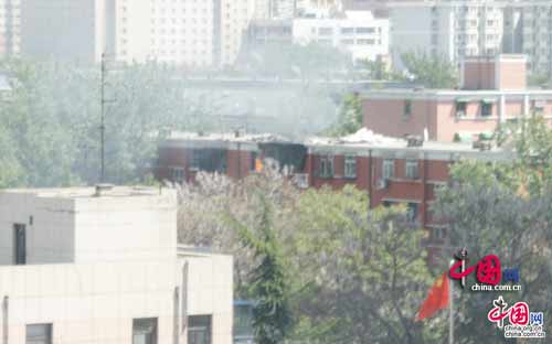 今日中午13时许,北京海淀区花园桥东一居民楼顶层发生爆炸。现场火势较为猛烈,浓烟一度遮盖了整个居民楼楼体。