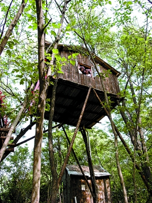 4月28日,在郑州国家森林公园大众生态园,两名网络征集的郑州美女“松鼠”和“凤凰”,从梯子爬上高达10米的空中小木屋,开始体验为期一个月的“生态鸟巢”生活。在这一个月内,她们的活动范围仅限于这间小阁楼,全部生活需要都在里面解决,联系方式只能通过网络,每天可以通过博客和网友们交流,这种全新的挑战方式引起社会关注。守业摄