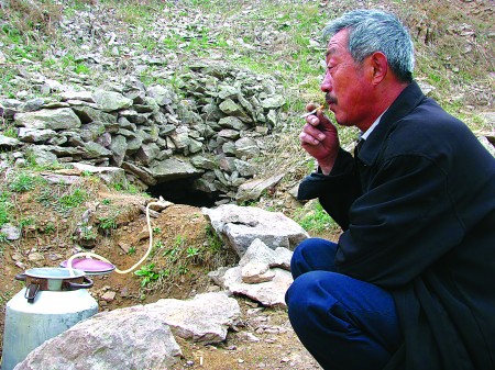 “十米深的水井不能用,我后来又打了个20米的井,发现打上来的水也还是这样。”刘汝华对记者说。从去年开始,他就每天傍晚骑着摩托车载一个水桶到离家四里地外的南山上带水吃。他和老伴帮在外地打工的儿子、媳妇照看孩子,两口子去年回来发现水里的杂质越来越多,坚决不敢让孩子喝了,说要买大桶水,但是老刘觉得大桶水太贵,所以就开始从山上取水。