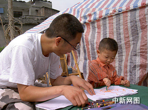 “这种心理障碍必须及时干预,如果不赶快治疗,后果非常严重!”高吉敏尝试着与他交流,但无济于事,那双暗淡无光的眼神和紧闭的嘴巴毫无反应。有经验的高吉敏拿出纸和笔,轻轻放在桌上,没有作声,悄悄地走出帐篷,耐心等待。果然,过了一会儿,高吉敏预料中的事情发生了:小浩宇抬手拿起画笔,刷刷地画了起来……他是把无法言说的痛一一表现在画面上。找到了突破口,高吉敏再次返回帐篷进行心理干预治疗,渐渐地,小浩宇的情绪有了变化。从冷漠的拒绝到尝试着交流,终于,这位12岁的少年大哭了20分钟,一连数天压抑在心中的情绪终于释放了出来。