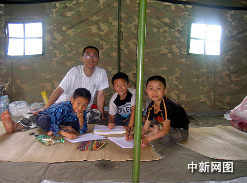 中新网5月12日电 题:他为灾区同胞播撒心灵的阳光