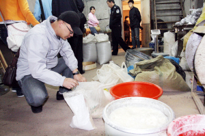 经过一天的检查,造假窝点的负责人一直没有露面。稽查人员将全部药品原料、成品装袋,准备没收。几名工人不断地阻拦稽查人员,理由是“这些药还没干燥好,装走了就不能卖了。”