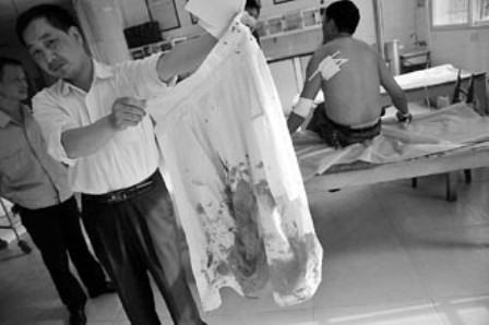 胡先生说,出于本能,他将儿子往酒店内一推,自己则堵在店门口。不料,这伙人转而砍他。