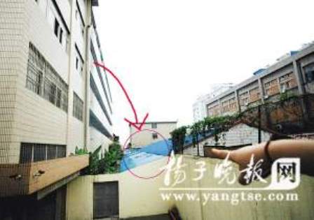 昨天上午9点多,记者接到报料后赶到现场,当时距离该名男生跳楼还不足半小时,受伤男生已被送到南京中大医院抢救。据一位目击该男生跳楼后情形的学校负责人介绍,当时他正在二楼办公室看报纸,只听见窗外“哐”的一声响,抬头一看,竟然看到一名男生砸在附近厂房的彩钢瓦顶上,将彩钢瓦顶砸出了一个大窟窿。所幸该男生没掉到窟窿里去,人还趴在屋顶上,他似乎还有意识,本能地向屋顶上方挪动了几下身体,这位目击者还有附近楼上居民看到这情形,还叫那男生“别动别动……马上叫人来救你!”那男生随后就抓住了厂房屋顶的一根横梁,就没再动弹了。“从他那时候的表情看,肯定摔得不轻,连喊救命的力气都没了,当时替他捏了把汗,能保命是关键啊。”