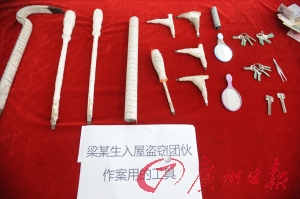 他们的作案和“侦察工具”也不少,比如有特制的小镜子,就是用来看有无暗锁,以此判断有没有人在家。他们外出作案时都拎着个电脑包,其实包里装的都是小撬棍、螺丝刀、自制万能钥匙等作案工具。