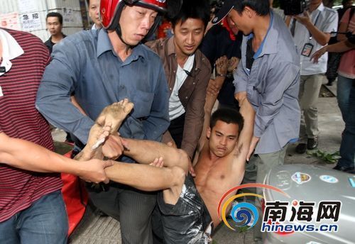 2点30分,现场民警经过紧密部署,一名飞鹰队员冲到楼顶上,乘男子不注意时将其按住,其他民警也随即冲了上去将男了捆绑了起来。这时,大家才松了一口气。男子随即被带回云露派出所。据警方介绍,该男子疑似精神病患者,警方目前正在寻找男子家属。(汪德芬)
