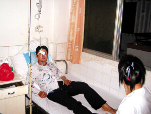 晚上8时许,记者走进了中医院的外科病房,除110室的一位女伤者仍在昏迷中外,其余4人均在二楼外科病房接受观察治疗。41岁的李雪×右眼逢了5针,她来自超竹镇,以踩三轮车载客为生。谈起突如其来的一幕,她说一时间觉得好像一部推土机向她推来,以后就失去了知觉。