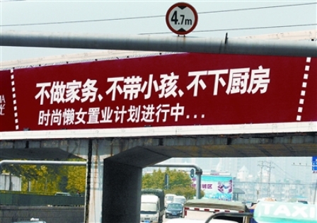 在武汉市友谊大道上,曾挂起一幅巨大的房地产广告牌,牌上赫然印着12个大字:“不做家务,不带小孩,不下厨房”。这“三不”女人的宣言,令生于60年代的大多数人想破脑袋也不明白:社会真是变化快,中国女性温柔贤淑、勤俭持家的美德怎么说没就没了呢?生于70年代的人一半持保守意见;80后和90后则举双手双脚赞成:不必烟熏火燎,没有琐事之扰,我们坚决做“零家务”的“三不”女人。
