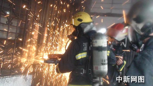 “救命啊、救命啊……”就在搜救人员进行搜救时,火灾事发地403室不停传出呼救声。明确被困人员位置后,多名消防战士准备进入403室抢救被困人员。进入房间不到三米,熊熊大火挡住了道路,屋顶已被大火烧的摇摇欲坠,许多天花板杂物和瓷板玻璃滑落,不停的砸向救援人员身上。