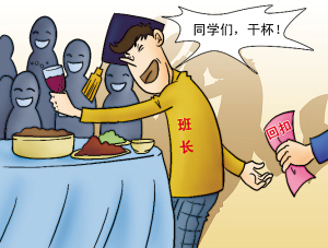 很多餐馆都对学生毕业宴的包席垂涎欲滴——一个班至少50个学生,毕业宴档次不会太差,人均消费至少80元,一餐下来,利润很是可观。由于是毕业,很多班级甚至要反复聚会几次,班级聚会后还有年级聚会,然后是小范围聚会,平均每个学生要赴宴10次以上。于是,很多餐馆就开始绞尽脑汁想办法拉客。