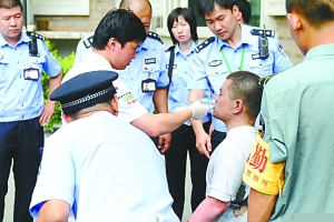 20分钟后,该男子在民警劝说下,走上急救车。