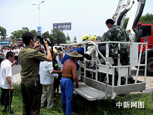 上午9时40分,台州110指挥中心接到报警后立即分派洪家当地派出所和椒江消防迅速出警,出警人员到达现场后发现,出事地点已经围拢着许多围观的群众,路口一块离地近30米高的广告牌下方吊着一名穿灰裤子的中年男子。但由于广告牌的入口比较狭小无法通过入口把死者解救下来,于是现场指挥人员决定采取消防登高的方法进行解救,上午11时10分,调派的消防登高车赶到了现场,12时在消防登高车的协助下消防队员成功把吊着的男子死体解救到地面,随后赶来现场的家属对死者进行了简单的包裹,