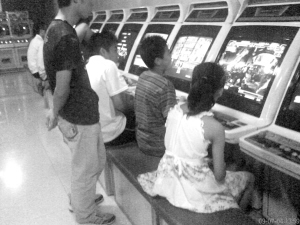 居民们说,这里的游戏厅还算小的,东直路上的规模更大,那里孩子也多。一到放假,孩子们几乎都爱到那里去玩。