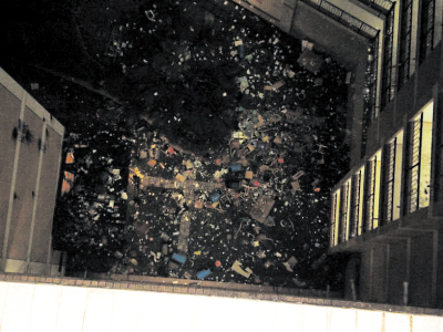 “还把寝室的桌椅也扔了下去!”“扁壳阳”说,他们甚至将放在楼道里的垃圾桶、地板砖也全部砸了下去。“热水房的顶棚都被砸坏了。”“扁壳阳”称,“毕业扔”在他们宿舍楼就持续了两三天。