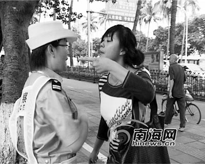 12日下午,海口交警对行人随意横穿马路、翻越攀爬护栏等交通乱象进行整治,一名女大学生面对交警野蛮耍横,被警方处以5天行政拘留。