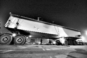 据悉,昨晚11时许,首片钢箱梁装车后,在巡逻警车的护送下,经京石高速、丰北桥、西四环、南四环、大红门桥等,耗时约1个半小时到达目的地。