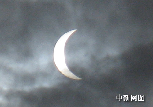 8:30分,在这座“黄河第一桥”中山桥及其广场上,在人们纷纷抬头仰望时,太阳光亮逐渐暗淡;8时45分,天空出现大量薄云。伴随云层越来越厚,天空变暗时,西北师大符彦飙博士说,有薄云和空气的轻度污染,观测相切不是很明显;9时15分时,从兰州可观测到食甚,月球遮住太阳光面积达到最多,太阳“缺掉”80%。
