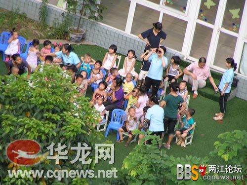 上午11:20分,网友“上面有人”在华龙网两江论坛上发帖,称幼儿园老师带领小朋友集合到操场,基本上在没有保护措施的情况下观看日全食,并附上了6张照片。