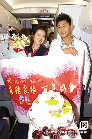 7月25日下午4:00,东航江苏公司南京—北京的MU2831航班上演绎了一场长达15分钟的空中求婚仪式。英俊帅气的北京小伙子高尚先生和年轻貌美的南京姑娘熊君小姐无疑成了当日航班上最幸福的人。