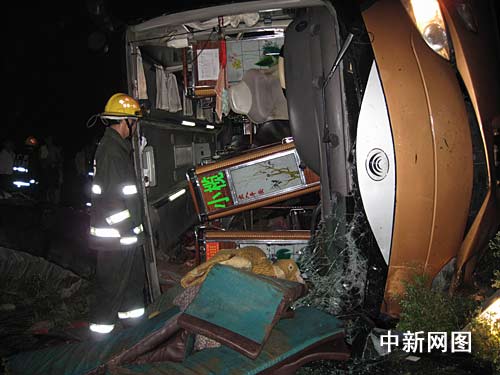 当晚8时37分,桂平消防大队接警后迅速出动6名官兵奔赴现场。此时现场两侧已排起了长龙。出事客车为桂R牌照,是由桂平开往广东中山的双层卧铺大客车。现场到处散落着乘客的衣物和大客车零件,客车车头撞在路边的沟上。