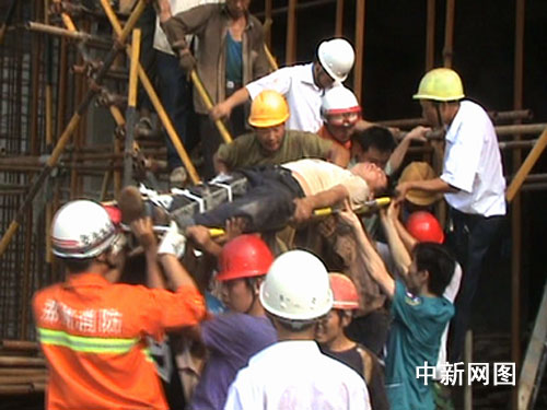 据该工地一王姓工友介绍,事故发生时,塔吊驾驶员正在操作塔吊向楼顶部运送建筑材料,但不知道什么原因塔吊突然向东面倒塌,直接砸在了施工的楼体上,当时在楼顶有3名民工因为发现险情较晚,被砸压在了楼顶的钢筋水泥网里,施工方正在组织人员进行自救。在消防官兵到达现场之前,他们已经在事故现场救出了2名伤者,并送往医院进行治疗。随后,在消防人员和民工的配合下,最后两名伤者被救援人员从近似废墟的倒塌现场救出,由于过度惊吓和自身受伤等原因,两名伤者已经呈现晕迷状态,经过简单观察治疗后也被急救车送往同一家医院进行抢救。