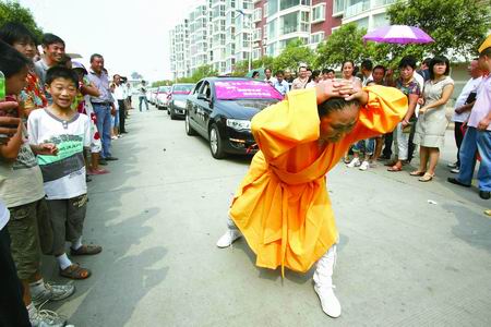 “这是第一次给家乡父老乡亲表演拉车功夫,也是我的最后一次表演。”张婷婷说,这几天,恰逢大相国寺百年一遇的传戒法会,她决定“静下心来潜心研究禅学”。