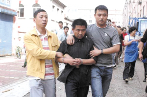 从监控录像上可以看出,犯罪嫌疑人是一名男性,40岁左右,身高在1.60米到1.65米之间,方脸、寸头,作案时穿一件灰色外套、内穿一件T恤衫、胸部带一白杠。按照这样一个体貌特征再结合两名目击者的描述,专案组请来专业画师为犯罪嫌疑人进行了画像,2009年8月20日,犯罪嫌疑人的画像开始在各大媒体播发,警方悬赏5万元向社会征集线索。