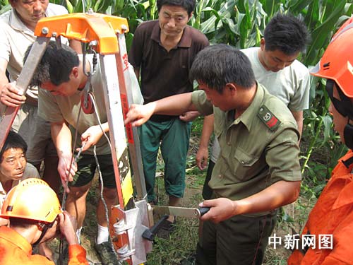 中新网郑州9月3日电(朱晓娟 尊华 邓良) 9月2日,位于河南省鹤壁市浚县黎阳镇桑庄村一名中年农妇不慎坠入玉米地机井内,情况十分危急。当地消防官兵赶到现场后,利用自制的井下救援工具,仅利用二十分钟就将农妇安全救出。