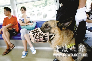 重庆市公安局公交总队抽调了3条防爆犬在轻轨沿线巡逻,它们一上车就成为了“明星”,和它们套近乎的乘客不少。