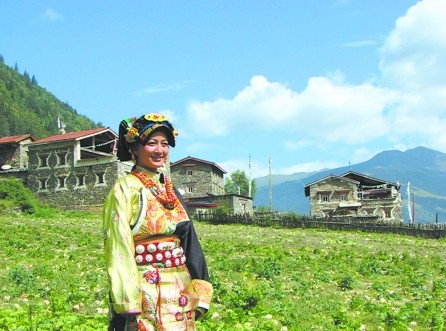 天刚亮,19岁的普尔巴斯基走出闺房,她的一天就从生火为一家人准备早餐开始。山风刮过谷地,寨子里腾起的炊烟随风飘散,石头堆砌的民居,茂密的森林,成片的白菜地,在蓝天白云下,构成了一副美丽的画卷,这就是普尔巴斯基的家,梭磨乡砍竹村上寨。