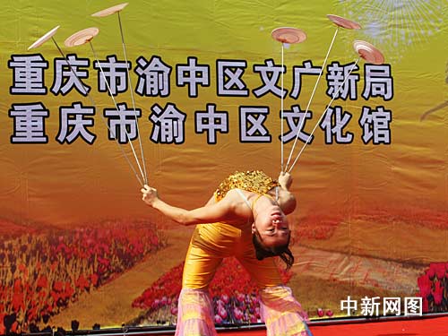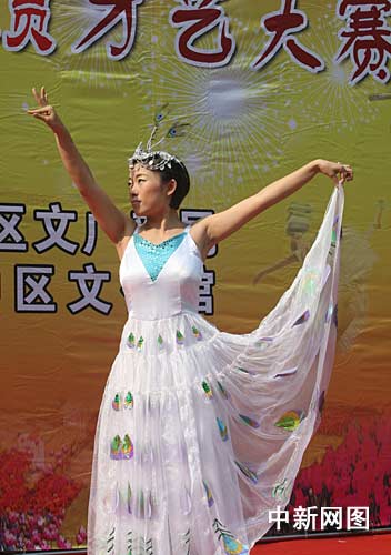 中新网重庆9月29日电 (孟幻 郭晋嘉)舞蹈、魔术、笛子独奏……29日,来自重庆市渝中区12个街道的上百名外来务工人员献艺,参加当地举办的外来务工人员才艺大赛,迎接新中国60华诞。