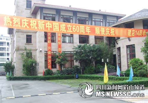 日前,记者接到眉山市民的热线的电话:在眉山市一餐饮店门口,出现了一幅雷人的标语。