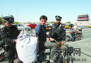 针对国庆节后各类案件有所反弹的治安形势,崇文分局各派出所适时调整警力,加大了对辖区重点部位的巡逻防范的力度,有效地遏制了案件反弹的势头。图为永外派出所民警在永定门附近巡逻盘查。