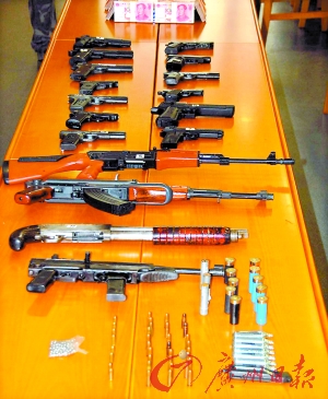“打黑”出动: 出租屋里缴获17支各式上膛枪支