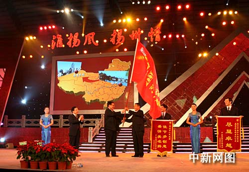 其后,进行了扬州与下届承办城市乌鲁木齐交接厨师节节旗仪式。主持人宣布:第20届中国厨师节将由乌鲁木齐承办,全场响起了热烈的掌声,晚会在一片赞扬声中精彩落幕。
