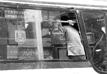记者在花卉园挤上一辆202路公交车,仅后车门处就挤了10余人。当行驶到红旗河沟建玛特车站时,因为人太多挡住下车的乘客,站在门边的售票员也被挤到车下等待。