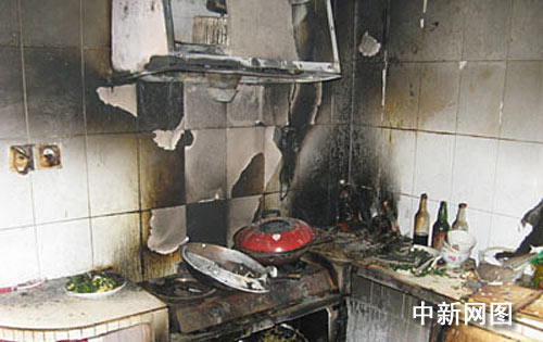当日接到报警后,滨海县公安消防大队立即派1辆消防车、6名官兵赶往现场:一个不大的厨房内一个煤气罐正在向外喷射火舌,而火冒向的位置则恰巧正对着另一个煤气罐。整个厨房一片狼藉,油烟机、煤气灶、锅等均已经烧毁。