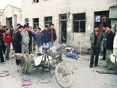 当天下午4时许,附近一家超市的老板正在店内打盹时,被巨大的爆炸声惊醒,随之,地面也开始震动。她急忙冲出房子,看到40多米外的地面上升起一股浓烟,被爆炸冲击波冲上天空的一些碎片不断地掉落在地上。她心有余悸地对记者说:“太可怕了,我起初还以为家门口的变压器爆炸了。没想到爆炸地点离我那么远,我都感觉这么强烈。”随后,听到爆炸声的人们从房子里跑了出来,他们被眼前的景象惊呆了。听到惨叫声后,人们向爆炸处跑去,只见一男一女倒在地上,女伤者是废品回收站的老板娘,她的一条腿已经不能动弹,满身是血。