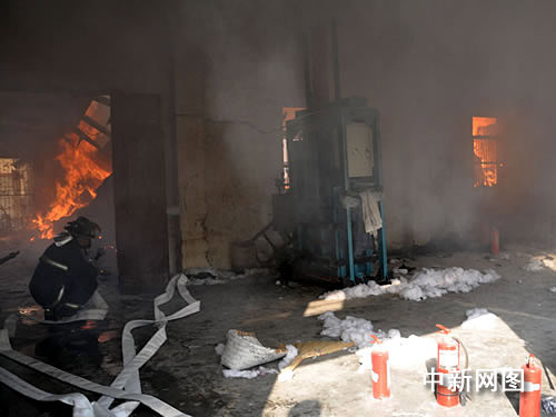 中新网南通10月21日电 (裘明明 王如海) 今天上午,江苏海安县农场一惠民绒业厂仓库发生火灾。海安消防出动3辆消防车16名官兵,经过4个小时的扑救,成功将火扑灭。