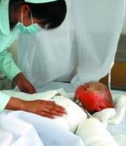 突然屋里传来“咚——哗啦”一声,紧接着就是孩子哭着求救,她们冲进屋里的时候,发现于小颖斜着身子落在门口灶台上那一大锅开水里,小家伙伸着一只胳膊想挣扎,却使不出力气。妈妈顾不得滚烫的开水,一把捞起了孩子……“这事儿是挺奇怪,正常人都没听到孩子喊救命,我那兄弟媳妇却能‘听’到,这可能还是心里有感应。 ”昨日上午9时许,在武警辽宁省总队医院烧伤科ICU病房门前,于小颖的姑姑于海芝告诉记者,“两个人紧着忙活,用凉水泼在孩子身上,希望能给孩子减少点痛苦,当她们小心地脱掉孩子身上的衣服时,发现孩子全身大部分都被开水烫得发白了,我那兄弟媳妇除了抱着孩子哭,都不知道咋办好了……孩子她爸也赶过来,两个人把孩子送医院来了。 ”“孩子的病情挺重,全身75%烫伤,大部分是三度。孩子现在还处于休克状态,没有脱离生命危险。 ”武警辽宁省总队医院烧伤科主任张博昨日向记者介绍了孩子的病情,“孩子送到医院的时候,情况特别危急,因为呼吸道受损,我们不得不实施急诊手术,将孩子的喉管割开,进行插管呼吸。另外,由于孩子上肢因为烫伤出现焦痂,体表下大量水肿,我们不得不实施减压切痂手术,以保全孩子的胳膊。 ”“孩子的家庭挺困难的,父母都是残障人士,是低保家庭。我们医院能免的费用都尽量给免了,但是孩子伤得太严重了,肯定还需要多次手术,才能保住性命。像血浆、异体皮这些费用是没法减免的,我们看着孩子也挺心疼。昨天给孩子救命的钱还是他家的朋友给凑的。 ”张博说,“明天,我们要给孩子做个比较大的手术,将她右腿仅存的好皮肤部分移植到其余的肢体和躯干部位,我们现在能做的就是在自己的能力范围内,尽力减少孩子痛苦,保住孩子性命。 ”(辽沈晚报 孙泽锋 实习生张澜报道 )