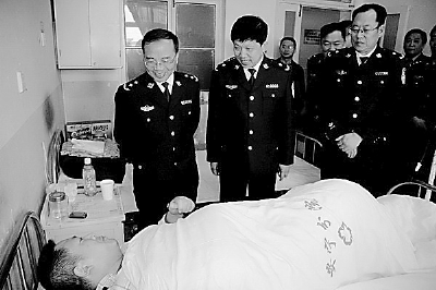 10月16日,省公安厅副厅长、市公安局局长王幸等领导专程赶往医院,亲切看望和慰问了在抓捕毒贩中英勇负伤的禁毒大队大队长徐光明。在病房,王幸对徐光明、李刚、刘红生、王丽萍4名民警的行为给予赞扬,并嘱咐他们好好养伤,争取早日康复。