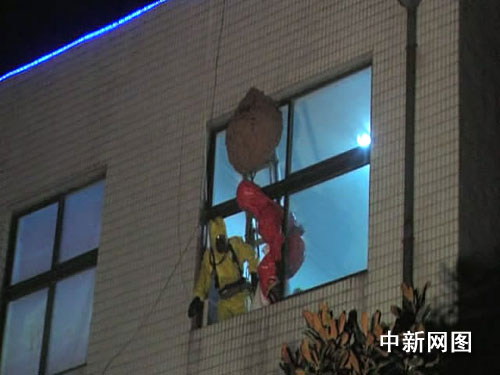 中队指挥员立即派出了三名经验丰富的队员,在穿好防化服、佩戴好空气呼吸器后,三人从房间内部架设梯子,沿梯子爬至了窗外。消防队员先利用蛇皮袋将蜂窝整个套住,随后利索的对蜂窝进行了铲除。