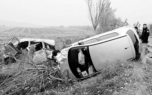 10月26日上午9点20分左右,在沈丹高速公路20公里处沈阳方向发生一起交通事故,一辆标致307轿车与一辆同向行驶的微型面包车撞在了一起后,一同冲下路基闯入了高速公路东侧的田地中。车祸造成微型面包车上的正副驾驶两人死亡,其余4人不同程度受伤。死亡的是夫妻俩,从本溪回昌图老家奔丧,没想到在路上发生了这样的不幸。
