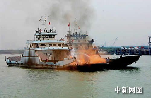 中新网常州十月二十九日电(吕春萍 何晓春),江苏常州水上搜救中心昨日下午举行了成立以来最大规模搜救演习。情景为常州录安州港区中天码头,一艘五千总吨的散货船在掉头时与三千总吨的“江顺一号”发生碰撞,造成两名船员落水,并引发火灾和燃油泄漏,造成水域污染,构成重大险情。