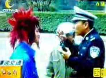某论坛出现一段题为“谭警官看不惯大刀阔斧洗刷‘非主流’”的视频,视频中一名90后男生打扮很是扎眼:染着红色头发,呈爆炸状,并将他的左脸全部遮挡。因为他乘坐摩托车没戴安全头盔,所以谭乔将其拦下,对其进行了教育,言语犀利、精辟,一时间在网上热传。昨(29)日,谭乔接受记者采访时笑着说:“我一直以为那个人是女的!”执勤这么久以来,还是第一次遇到这样的打扮,着实把他给“雷”了一把。
