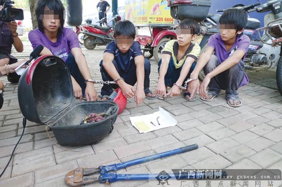 这四名成员中,最大的梁×今年17岁,横县人。最小陈×,11岁多。另两人也只有十三四岁。梁×由于年龄大,社会经验比他们丰富,因此充当着“家长”的身份,负责寻找目标、望风及销赃。另外三个年龄小的只能冒着风险去“干活”。