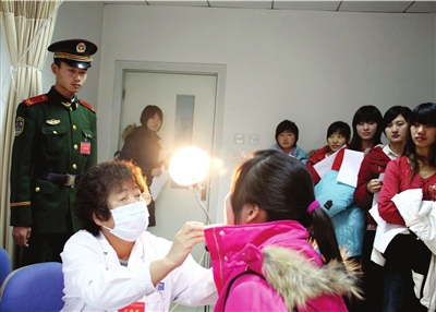 昨天开始,北京应征女青年体检工作全面展开。截至昨天,已有3000余名女青年报名,共确定1200多人参加体检。本次体检新增了妇科B超项目,而视力、体重仍为淘汰主因。